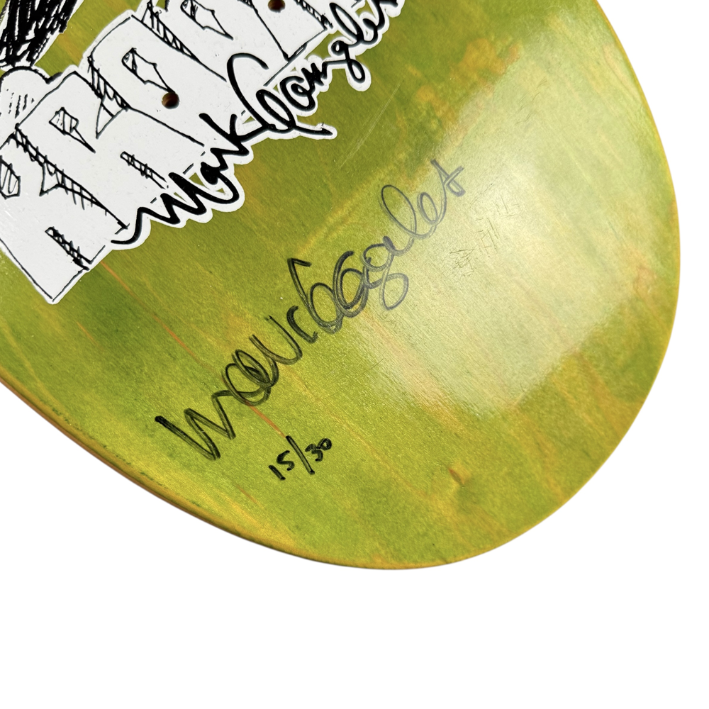 This signed Mark Gonzales Krooked deck isn’t just a skateboard—it’s a piece of skateboarding lore. With its combination of legendary rider, iconic graphics, and autograph, it’s a must-have collectible for serious skate enthusiasts and art-minded collectors alike.